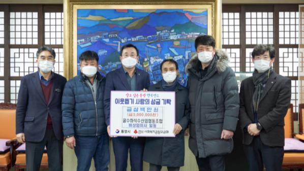 굴수산업협동조합 김동명 수석비상임이사 등 이사 5명은 1월 13일(목) 통영시청 시장실을 방문하여 설맞이 어려운 이웃을 위한 불우이웃돕기 성금 3백만 원을 기탁했다.