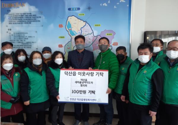 진천군 덕산읍 새마을남여지도자협의회(회장 김병춘, 장금숙)는 14일 덕산읍행정복지센터를 찾아 성금 1백만 원을 기탁했다.