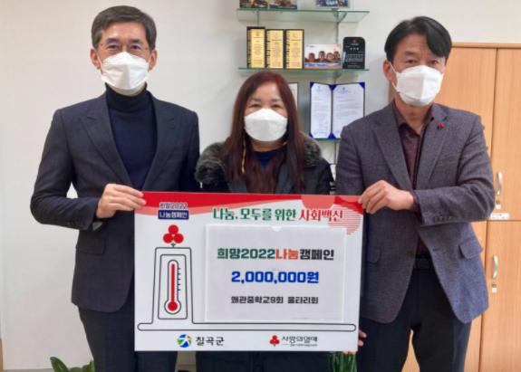 왜관중학교 9회 울타리회가 지난 13일 칠곡군청을 방문해 이웃돕기 성금 200만 원을 전달했다.