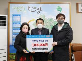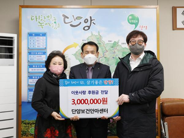 충북 단양군은 단양보건안마센터에서 관내 취약계층 지원을 위한 후원금으로 300만원을 기탁했다고 지난 14일 밝혔다.