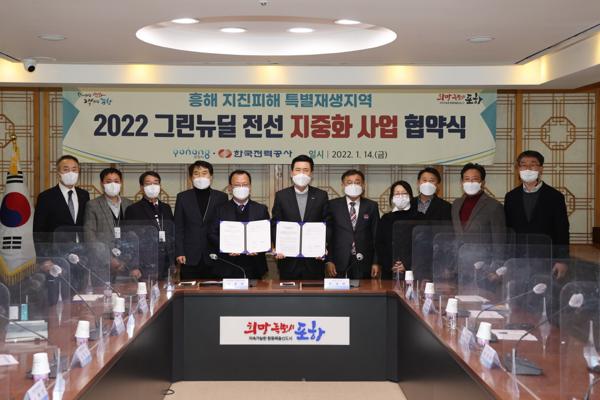 포항시는 한국전력공사 대구본부와 함께 14일 포항시청 중회의실에서 ‘2022 그린뉴딜 전선지중화 사업 협약식’을 개최했다.