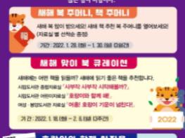 주요 내용으로 △책의 문장, 서평 글을 활용해 책을 추천해 주는 ‘새해 복 주머니, 책 주머니’ △새해에 읽기 좋은 도서 또는 호랑이와 관련한 이야기를 담은 ‘새해맞이 북 큐레이션’ △도서관 내에 있는 호랑이 또는 비치된 새해 팻말과 함께 사진을 찍어 인증하는 ‘호랑이와 함께 사진을’ 방문 이벤트를 실시할 예정이다.