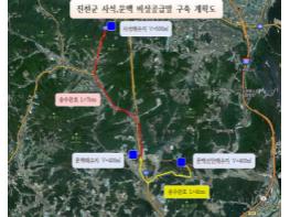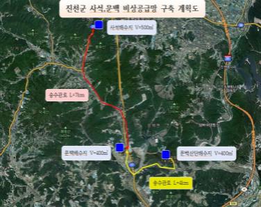 관로파손 등 비상상황 발생시 물 공급이 중단되는 사태를 방지하기 위해 진천읍 사석배수지와 문백산단 배수지를 연계하는 송수관로 11km를 매설하고 가압장 1개소를 신규 설치한다.