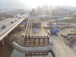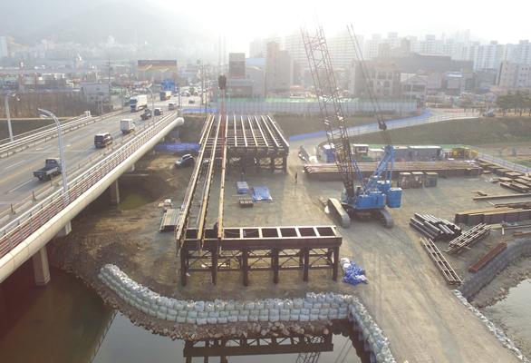 양산천을 가로지르는 하천 교량공사 특성상 여름 우기,장마철을 피해 공사를 진행해야 하는 현지여건을 감안하여 동절기 시공계획 승인하여 3월중 교통우회용 가설교량 개통을 목표로 하고 있다.