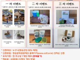 청송문화관광재단 홈페이지에서 1월 17일, 1월 18일, 1월 25일 10:00~18:00 3차례에 걸쳐 선착순으로 체험키트 신청을 받는 이벤트를 진행하며, 체험키트는 청송문화관광재단이 운영하는 유튜브 채널을 통해 동영상을 보며 쉽게 따라 만들 수 있다.