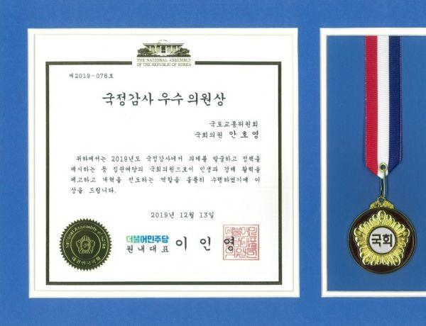 안 의원은 “당에서 객관적 평가 기준을 통해 뽑는 국정감사 우수의원상에 4년 연속 수상하게 되어 기쁘다”며“앞으로도 더 낮은 자세로 국민들의 이야기를 경청하고 국민들의 목소리를 제대로 대변 할 수 있도록 의정활동에 임하겠다”고 말했다.