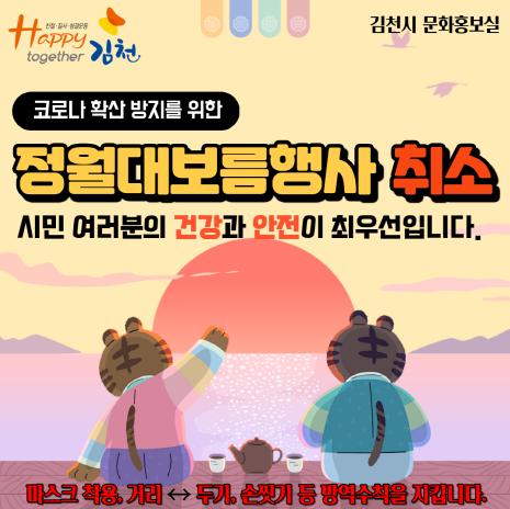 김천시는 코로나19 확산 방지를 위해 다음달 15일 예정되었던 정월대보름 행사를 전면 취소한다고 밝혔다.