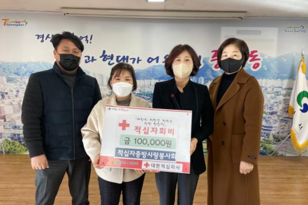 중방동 적십자봉사회에서는 14일 적십자 회비 모금 운동에 적극적으로 동참하고자 중방동 행정복지센터를 방문하여 중방동 적십자봉사회 10만 원, 주연옥 회장(다사랑효마을요양원 원장) 30만 원을 기탁했다.