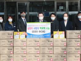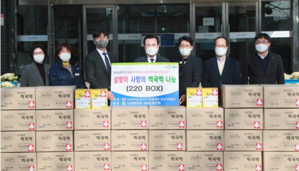함양군은 1월 17일 오전 (사)우리농업지키기운동본부 경남지역본부에서 떡국 떡 2kg 220박스(308만원 상당)를 기탁했다고 밝혔다.