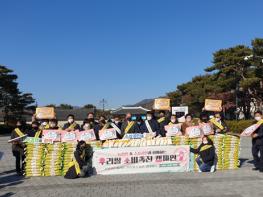 김해시 소상공인연합회는 17일 서상동 왕릉광장에서 설을 맞아 쌀 소비 촉진 캠페인을 개최했다.