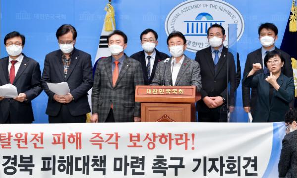이철우 경상북도지사는 17일 국회 소통관에서‘정부 탈원전 정책에 따른 피해지역 대응책 마련 촉구’기자회견을 갖고 정부의 일방적 탈원전 정책으로 사회?경제적 피해를 입은 경북지역에 대한 보상대책 마련을 촉구했다.