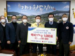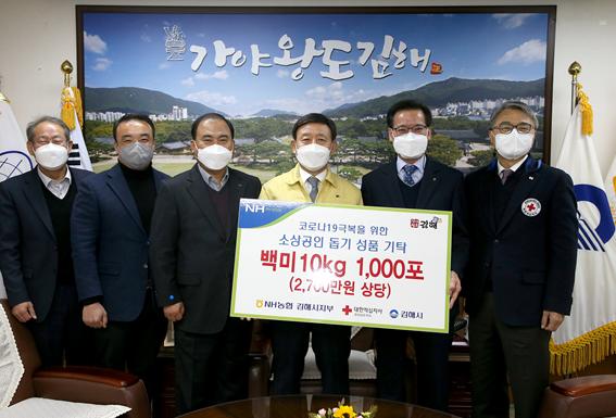 기탁된 쌀은 대한적십자사와 김해시소상공인연합회를 통해 어려움을 겪고 있는 지역내 소상공인에게 배부될 예정이다.