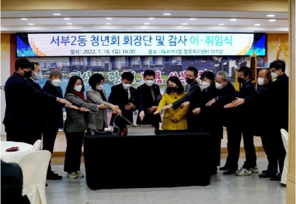서부2동 청년회는 16일 서부2동행정복지센터 2층 회의실에서 청년회원 및 각 단체 회장들이 참석한 가운데 서부2동 청년회 회장단 및 감사 이·취임식을 개최하였다.