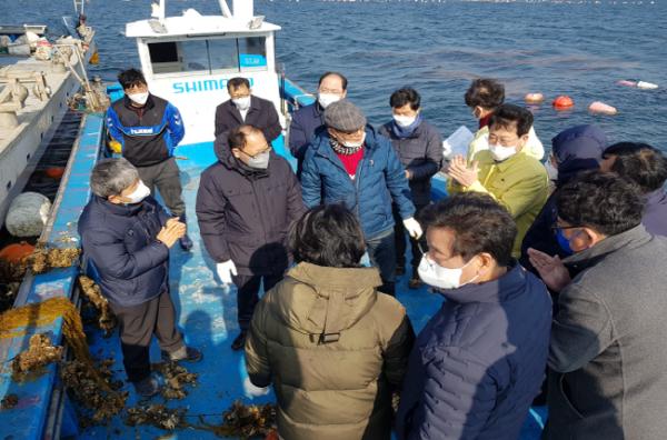 이번 현장 방문에는 추운날씨에도 불구하고 변광용 거제시장 및 김정호 국회의원, 옥영문 거제시의회의장을 비롯한 경남도의원(김성갑, 송오성, 옥은숙), 거제시의원(김두호, 노재하, 안석봉, 이태열, 최양희), 백순환 더불어민주당 거제지역위원장, 굴수협조합장, 거제수협조합장 등이 동행했다.