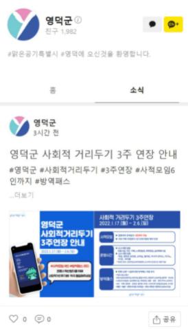 영덕군이 카카오톡 채널을 활용해 군민과의 쌍방향 소통을 활성화하고 이를 군정에 적극 반영해 각광을 받고 있다.