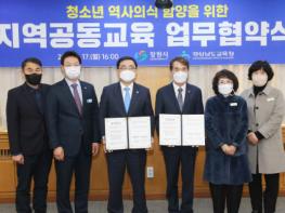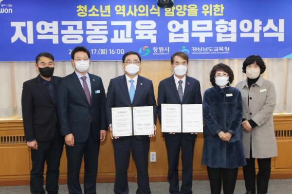 창원시는 17일 오후 4시 시정회의실에서 경상남도교육청(교육감 박종훈)과 ‘청소년 역사의식 함양을 위한 지역공동교육 업무협약’을 맺었다고 밝혔다.