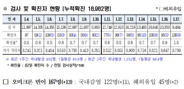 경상북도에서는 1월 17일 12개 시·군(시 9, 군 3)에서 코로나19 확진자 국내감염 129명, 해외감염 9명이 신규 발생했다.