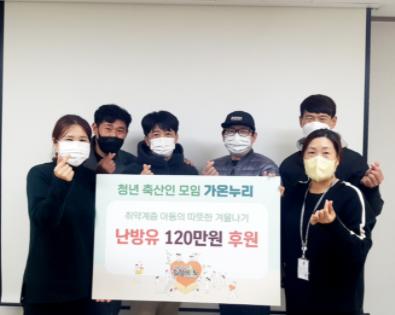 상주시 청년 축산인 모임 가온누리가 1월 14일 겨울철 한파에 취약한 아동 가정에 난방유 120만원 상당을 후원하여 2022년 새해를 맞아 지역사회를 따뜻하게 만들었다.