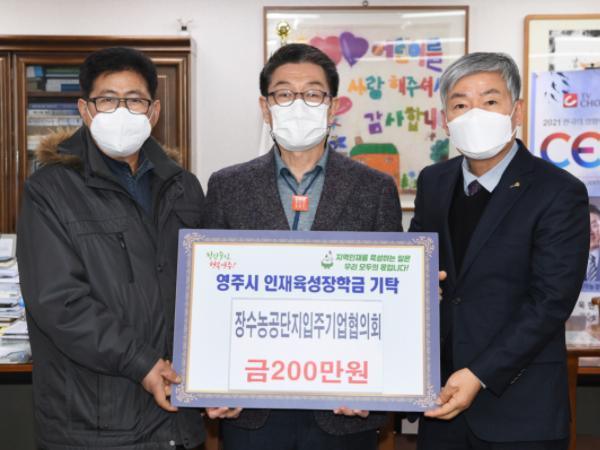 영주시인재육성장학회는 17일 장수농공단지입주기업협의회(회장 김정호)에서 200만원의 장학금을 기탁했다고 전했다.