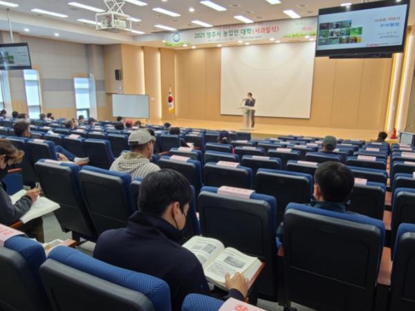 장욱현 영주시장은 “우리지역 농업의 질적 향상과 농업의 부가가치 증대를 위해 시행되는 지역대학 농업인 교육과정이 농업인들이 과정에서 배운 지식을 농산물 가공 등에 접목할 수 있는 실효성 있는 교육이 되기를 바란다”며 “앞으로도 우리 시에서는 농업인에게 양질의 교육을 제공해 지역 농업의 경쟁력 강화를 위해 노력하겠다“라고 말했다.
