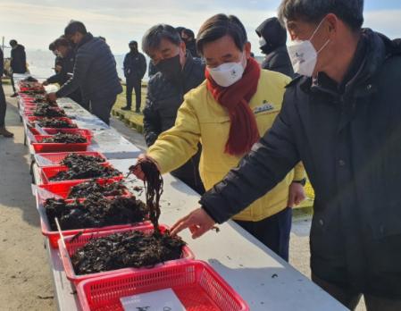 노박래 서천군수는 지난 15일 송석항 물김 수매현장을 방문해 어민들과 관계자를 격려했다.