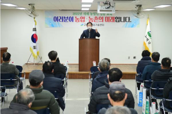 고령군은 새해 영농 계획 수립과 급변하는 농업 환경에 능동적으로 대처하기 위한 ?2022년 새해농업인 실용교육?을 1월 17일 부터 2월 4일까지 총 8회에 걸쳐 520명을 대상으로 읍·면 순회 교육을 실시한다.