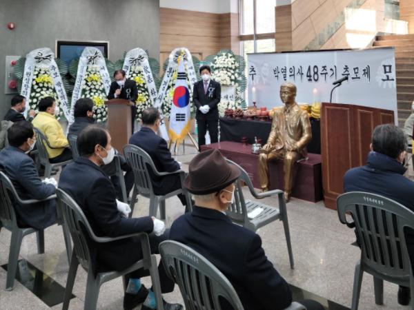 박열의사기념사업회는 지난 17일 마성면에 위치한 박열의사기념관에서 ‘제48주기 박열의사추모제’를 봉행하였다. 이 날 추모제는 코로나 방역 및 예방 차원에서 내빈을 모시지 않고 기념관 관계자들만 참석하였으며, 박열의사의 약력소개에 이어 기념사업회 이사장의 추도사 및 헌화와 분향 순으로 진행되었다. 또한 코로나 방역지침에 따라 추모제 참여자 체온 측정, 백신접종 확인, 거리두기 등 방역수칙을 철저히 지켜 행사를 진행하였다.