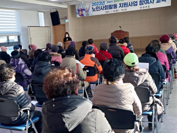 이번 교육에서는 코로나19 감염 방지를 위해 18일과 19일 양일간 2개조로 나눠 실시했으며, 코로나19 방역과 노인사회활동지원사업 중 지켜야 할 안전수칙과 동절기 사고 예방 수칙에 대한 교육이 이뤄졌다.
