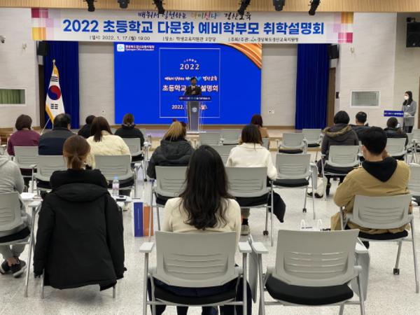 경산교육지원청은 1월 17일 19시에 학생교육지원관 2강당에서 '2022 초등학교 다문화 예비학부모 취학설명회'를 가졌다.