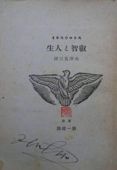 이 의문의 ‘사인’은 이육사가 소장한 책으로 알려진 일본어 책, 예지와 인생(叡智と人生)(포르튀나 스트로프스키Fortunat Strowski(1866-1952) 지음, 오사와 히로미大澤寬三 역, 동경, 第一書房, 1940년) 속표지에 남겨진 것이다. 이 책 속표지에는 의문의 ‘사인’과 함께 ‘육사’(陸史)라는 전서체(篆書體)의 한자로 된 이육사의 ‘인장’이 선명하게 찍혀 있어, 이 책의 주인이 이육사인 것을 알려준다. 그런데도 이 ‘사인’의 주인을 이육사라고 지금까지 확정할 수 없었던 까닭은, 흡사 영문자처럼 보이는 ‘사인’을 연구자들조차 해독할 수가 없었기 때문이다.
