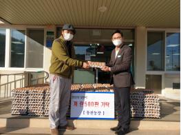 한편 같은 날 용덕면 동천농장 우준원 대표는 관내 이웃과 돕고자 계란 500판(300만원 상당)을 보내왔다.