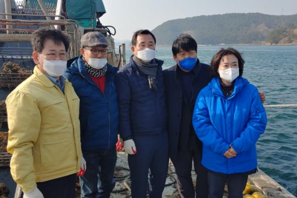 강석주 통영시장은 김정호 국회의원(더불어민주당 경남도당위원장), 양문석(더불어민주당 통영·고성 지역위원장), 배윤주 시의원, 지홍태 굴수협조합장과 함께 2022.1.16.(일) 피해입은 어장을 방문하여 지난 8월~11월간 영양염류 농도 기준치 이하로 인한 먹이생물 부족으로 피해(굴 폐사)를 입은 어장의 조속한 시일 내 피해 어업인들에게 복구비 지원이 될 수 있도록 방안을 논의하였다.