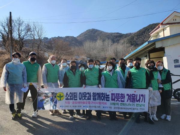 직장, 공장새마을운동구미시협의회에서는 1. 18. 14:00 선산읍을 비롯한 11개 읍면동 15가구를 대상으로 연탄을 전달하는'사랑의 연탄나누기 봉사'를 실시하였다.
