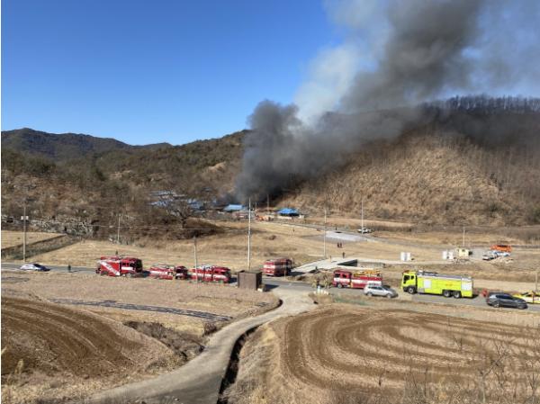 이번 산불은 오후 12시 40분 경 주택화재비화로 산불이 발생하였으며, 가동인력과 장비를 총동원하여 빠른 시간 내 진화를 완료할 예정이라고 밝혔다.