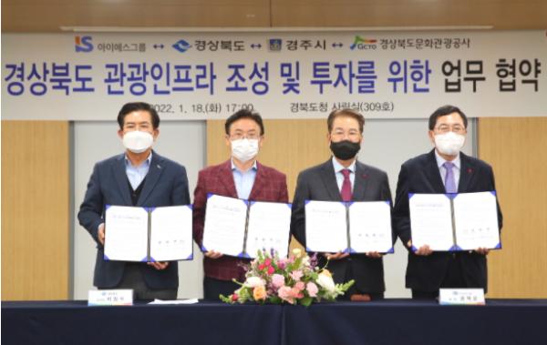 경주시는 18일 경북도청 사림실에서 경북도와 경북문화관광공사, 아이에스지주㈜와 경주 보문관광단지 짚라인 타워 조성을 위한 업무협약을 체결했다.