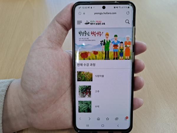 수강방법은 영주시 농업인들에게 문자메시지로 교육안내 링크를 전송할 계획이며 클릭한번으로 별도의 로그인 과정 없이 자유롭게 참여가 가능하다.