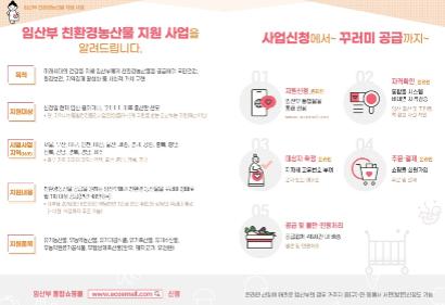 사업 신청은 임산부 친환경농산물 통합쇼핑몰 에코이몰에서 할 수 있으며 읍면 산업경제팀에서도 신청이 가능하다. 대상자로 확정된 임산부는 올해 12월 15일까지 원하는 친환경농산물을 선택해 자부담 20% 결제 후 택배로 배송을 받을 수 있다.