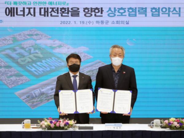하동군은 19일 군청 소회의실에서 한국남부발전(주)과 대송산업단지에 친환경 에너지 대전환을 위한 양해각서를 체결했다고 밝혔다.