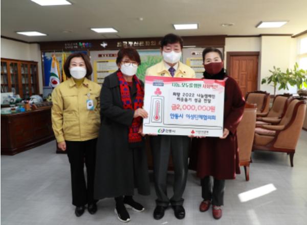 안동시 여성단체협의회는 저소득층 및 취약계층에 있는 분들을 위로하고자 희망2022 나눔캠페인 이웃돕기 성금 2백만 원을 전달하였다.