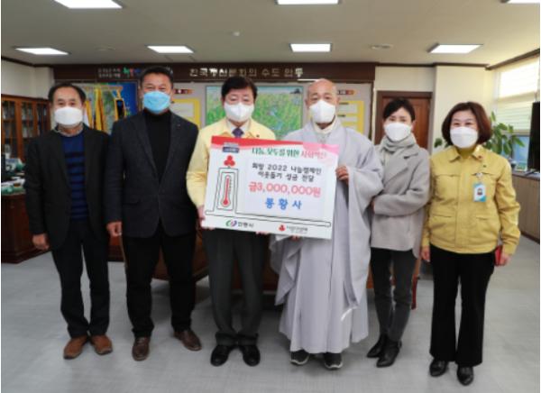 안동시는 봉황사에서 1월 18일 어려운 이웃에게 보탬이 되고자 희망2022 나눔캠페인 이웃돕기 성금 3백만 원을 전달하였다고 밝혔다.