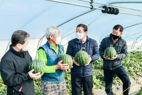 조근제 군수는 설 명절을 앞두고 19일 군북면 월촌리 박민규농가 겨울수박 출하 현장을 방문해 관계자들을 격려하며 “함안수박이 맛과 명성을 유지할 수 있도록 경쟁력 강화와 철저한 품질관리를 위해 노력해 주시길 당부드린다”고 말했다.