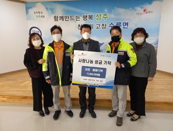 수륜면 의용소방대은 1월 19일 수륜면사무소를 방문하여 지역의 어려운 이웃을 위해 사용해 달라며 성금 50만원과 롤휴지 50팩을 기탁했다.