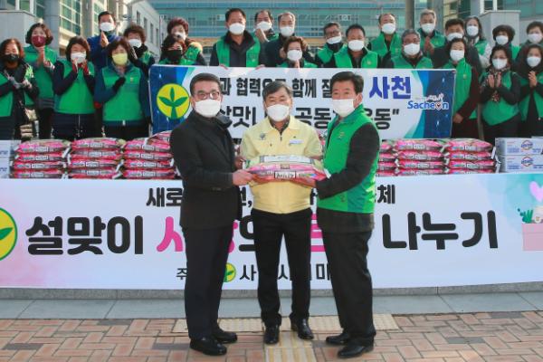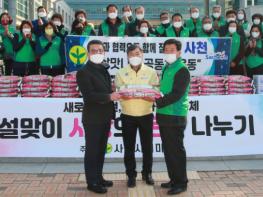 한편, 사천시새마을회는 매년 어려운 세대에 쌀을 전달할 뿐만 아니라 폐자원 수거, 이동도서관 운영, 홀몸어르신 김치 전달 등 지역사회 발전을 선도해 온 국민운동단체로 어려운 이웃에 대한 위문과 함께 각종 봉사활동을 병행해오고 있다.