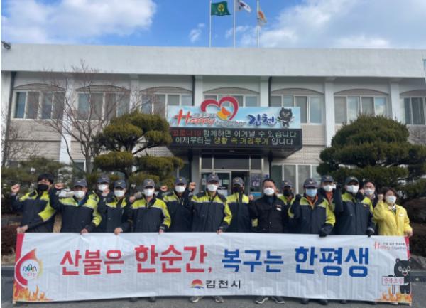 김천시 감천면 의용소방대 대원 22명은 지난 19일 감천면 소재지 주변 지역주민을 대상으로 산불예방 캠페인을 실시했다.