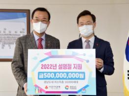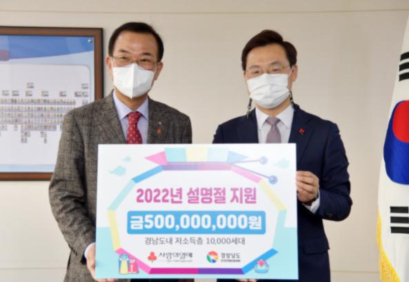 경남도는 경남사회복지공동모금회(회장 강기철)가 설 명절을 맞이하여 도민들의 따뜻한 마음이 담긴 위문금 5억 원을 전달해왔다고 밝혔다.