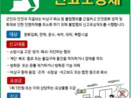 신고포상제란 '화재예방 소방시설 설치유지 및 안전관리에 관한 법률 제47조의3'과 '경상북도 소방시설 등에 대한 불법 행위 신고포상제 운영조례'에 의거하여, 화재 발생 시 안전한 장소로 대피할 수 있는 중요한 소방시설 등의 설치·유지 의무 위반 행위를 신고한 자를 포상하고자 마련된 제도이다.