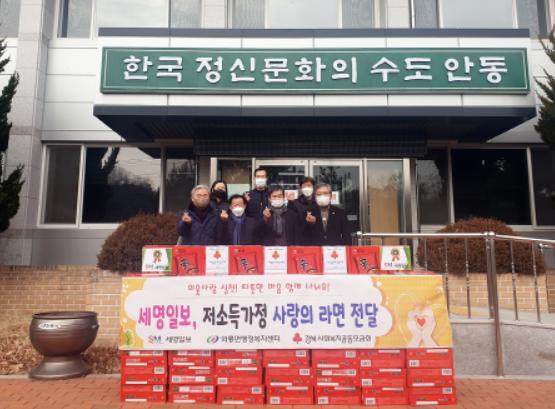 안동시는 세명일보에서 1월 19일 와룡면행정복지센터에 방문해 생활이 어려운 저소득 가정과 경로당 등에 전달해 달라며 라면 100박스(150만 원 상당)를 기탁하였다고 밝혔다.