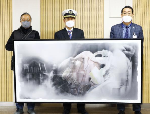 칠곡군은 아덴만 여명작전 11주기를 하루 앞둔 20일 칠곡호국평화기념관에서 총탄 6발에 큰 상처를 입고 위중한 상태에 놓여있던 석해균씨 모습을 담은 그림을 전달했다.