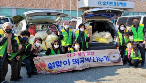 이번 나눔은 새마을후원회가 자체기금으로 떡국떡을 만들어 진행되었으며, 회원들이 오차드요양병원 및 인덕사랑마을 등 관내노인요양원과 주간보호센터 8개소에 떡국떡을 직접 전달하였다.