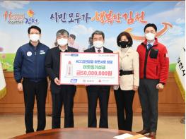 김충섭 김천시장은 “지역사회의 어려운 이웃을 위해 선뜻 내어주신 따뜻한 마음에 감사드리며 KCC의 소중한 성금이 취약계층에 희망이 되도록 잘 전달하겠다.”고 감사의 뜻을 전했다.